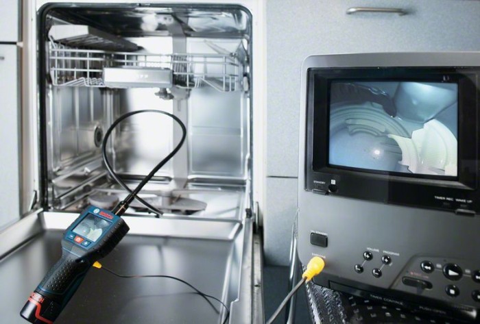 Kamera Borescope Bosch GOS 10.8 V-Li, merupakan alat untuk melihat ke bagian yg sulit dicapai dengan bantuan kabel flexibel. Bisa melihat ke sela-sela yg cukup sempit seperti bagian mesin, saluran pembuangan dan wc, saluran udara, pipa jaringan listrik, dan lain-lain. Dengan gambar yang realistik pada layar LCD 2.7″ LCD beresolusi tinggi. Kamera juga dilengkapi dengan lampu LED yang cerah dengan iluminasi yang optimum pada area gelap. Selain itu alat ini juga memiliki kabel kamera yang cukup panjang dan memiliki kepala kamera untuk berbagai macam aplikasi. Dalam paket ini hanya alat saja tidak dilengkapi dengan charger dan juga tidak disertakan baterai.