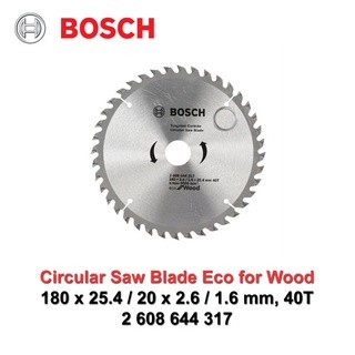 Mata gergaji circular Bosch ECO 40T berdiameter (180 x 2.6 / 1.6 x 25.4)mm. Jumlah gigi gergaji 40. Dengan bahan tungsten carbide berkualitas. Mata yang tajam dan juga lebih tipis sehingga pemotongan dapat lebih cepat dan hasil yang lebih halus.