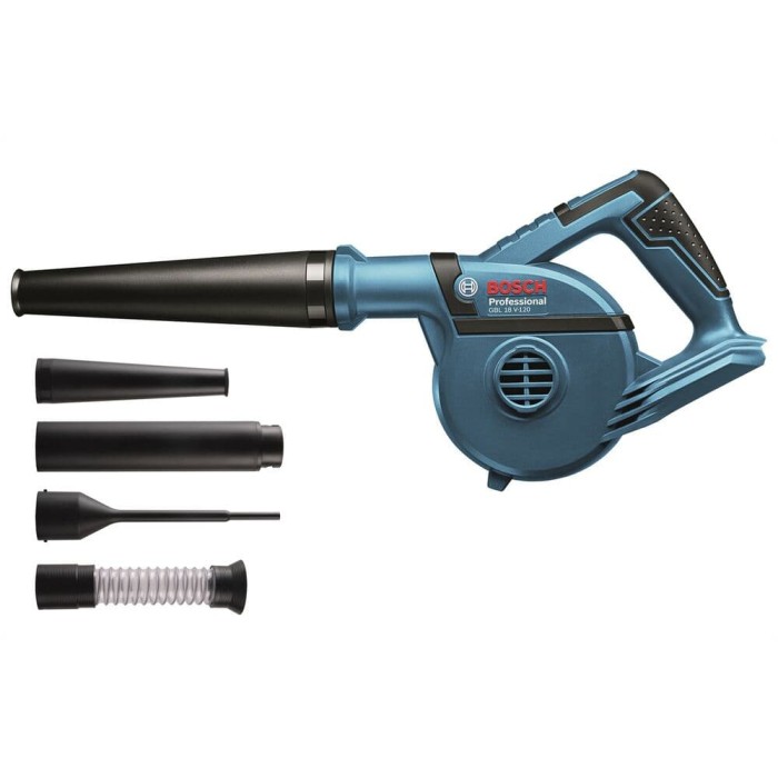 Bosch GBL 18V-120 Sangat kuat! Kecepatan udara 270 km / jam (75 m / s) sangat serbaguna. Sempurna untuk membersihkan tempat penggunaan dan membersihkan lubang bor. Ringkas dan praktis. Sangat mudah dikendalikan
