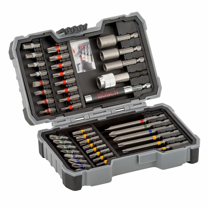 Bosch 43Pcs Srewdriver Bits Set merupakan obeng bit set dengan pemegang universal cepat-perubahan serta pemegang universal yang universal.