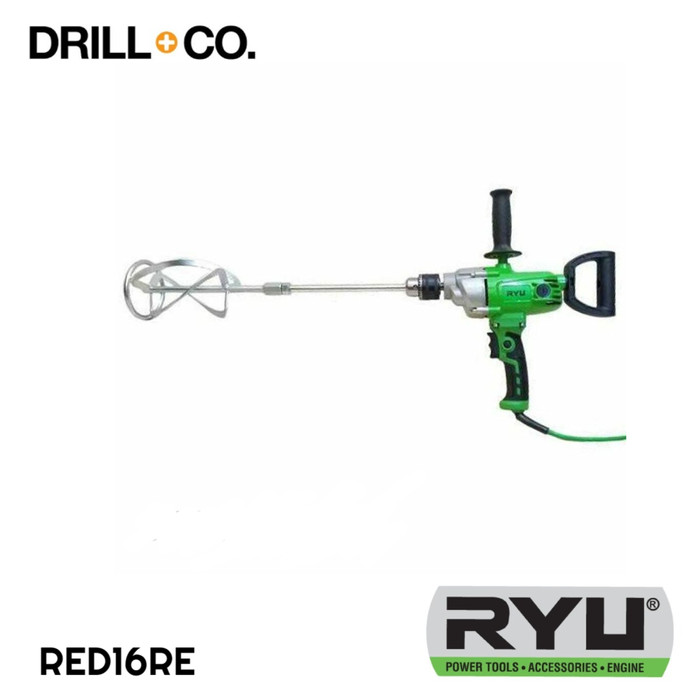 RYU RED16RE adalah mesin pengaduk cat, adonan semen, mortar dan sebagainya yang memiliki daya 950 watt yang meminimalisasi gelembung pada adonan. speed gear box untuk maximum torque untuk applikasi yang berbeda serta soft start untuk control yang lebih baik didalam pengaplikasian. Selain itu, Desain Handle dengan soft grips membuat anda mudah dan nyaman ketika mengaduk cat.