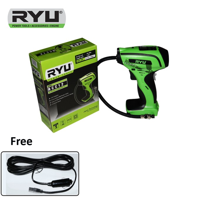 RYU RCC12 adalah kompressor angin portable yang menggunakan listrik DC sehingga dapat dipakai pada adaptor lighter mobil untuk pengisian ban mobil maupun motor anda.